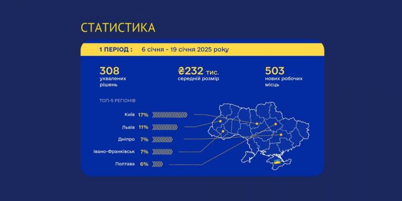 Оголошено переможців першого періоду подачі заяв на отримання мікрогрантів згідно з програмою «Власна справа», який тривав з 06 січня до 19 січня 2025 року. Івано-Франківська область увійшла в п’ятірку лідерів серед регіонів з найбільшою кількістю прийнятих Державним центром зайнятості позитивних рішень, а це означає, що бізнес Прикарпаття активно розвивається.