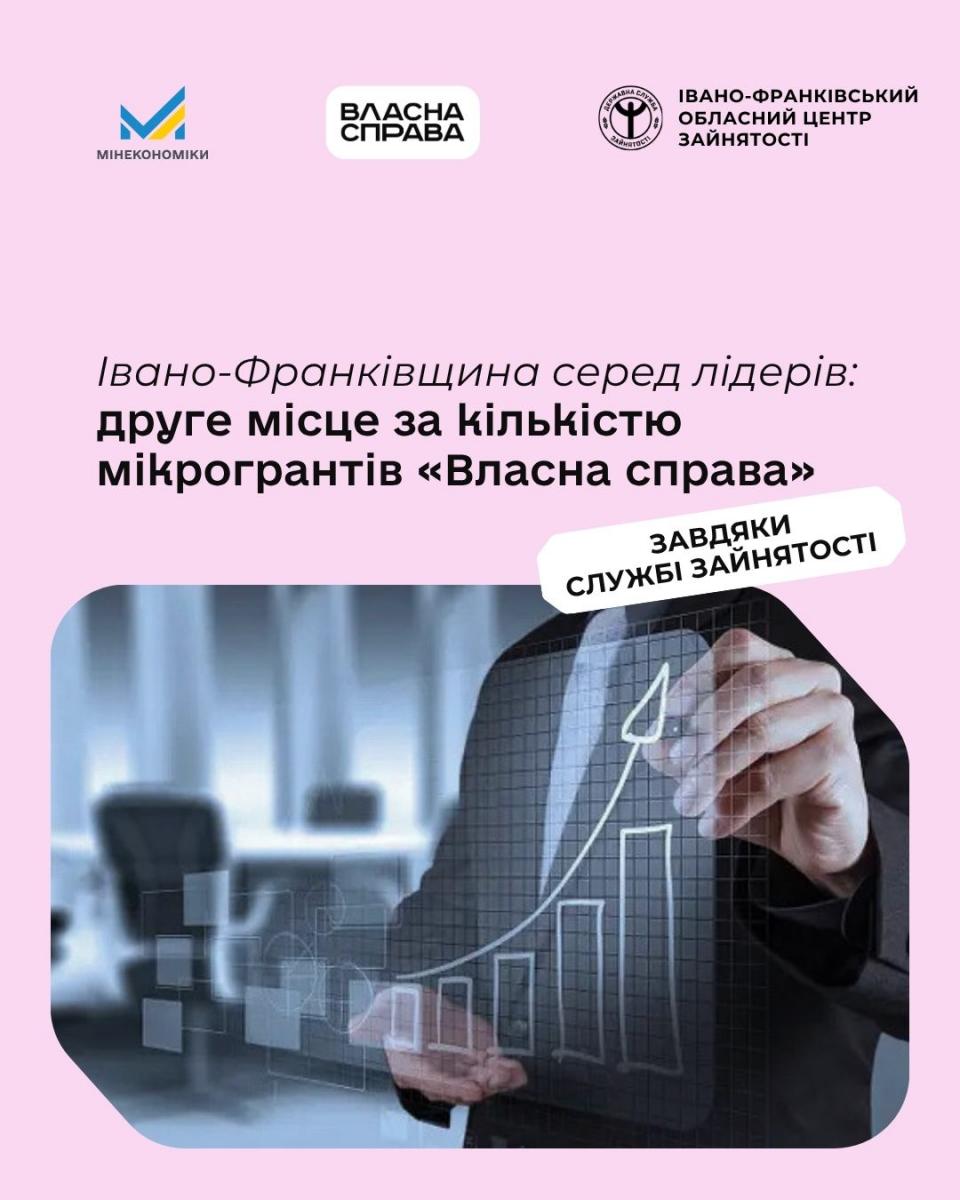 Івано-Франківщина посіла друге місце серед інших регіонів України за кількістю прийнятих Державним центром зайнятості позитивних рішень щодо надання коштів мікрогранту для подавачів заяв з Прикарпаття за підсумками четвертої хвилі грантової програми «Власна справа», яка тривала з 23 лютого по 8 березня 2026 року.