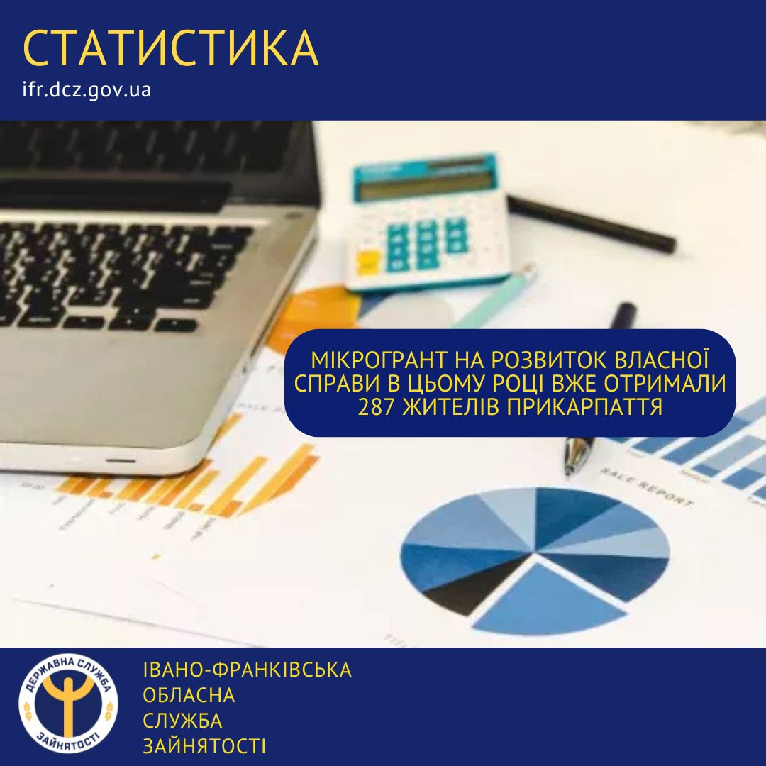 Від початку року вже 287 жителів Прикарпаття, в тому числі 11 внутрішньо переміщених осіб отримали позитивне рішення Державного центру зайнятості щодо надання їм коштів мікрогранту та згодом створять 478 робочих місць в різних галузях.