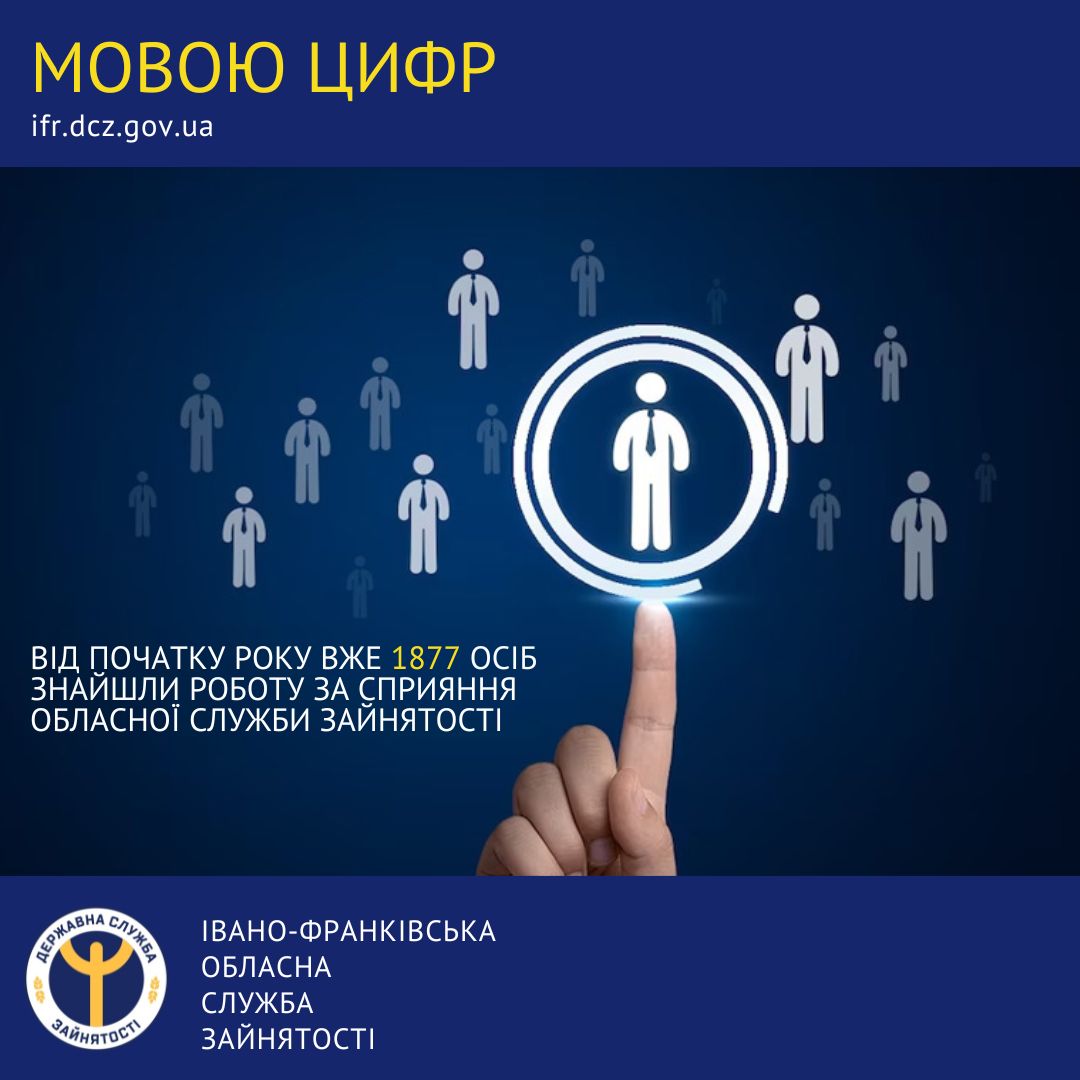 За сприяння служби зайнятості працевлаштовано 1877 осіб, зокрема 1157 зареєстрованих безробітних. Рівень працевлаштування склав 29% (по Україні - 17%, 1 місце).