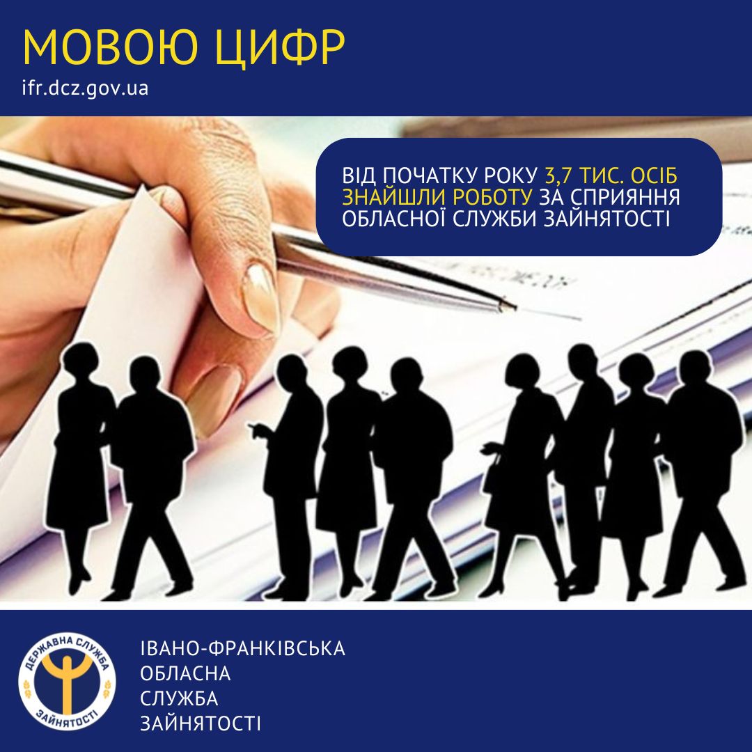 За сприяння служби зайнятості працевлаштовано 3,7 тис. осіб, зокрема 2,3 тис. зареєстрованих безробітних. Рівень працевлаштування склав 39,6% (по Україні - 28,3%, 1 місце).