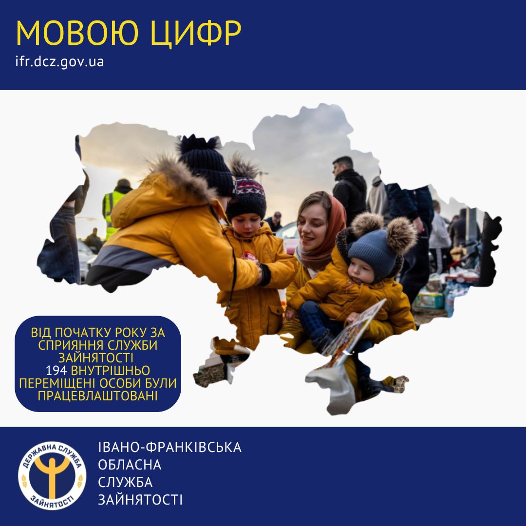 Від початку року статус безробітного мали 774 внутрішньо переміщені особи. За сприяння служби зайнятості 194 внутрішньо переміщені особи були працевлаштовані.