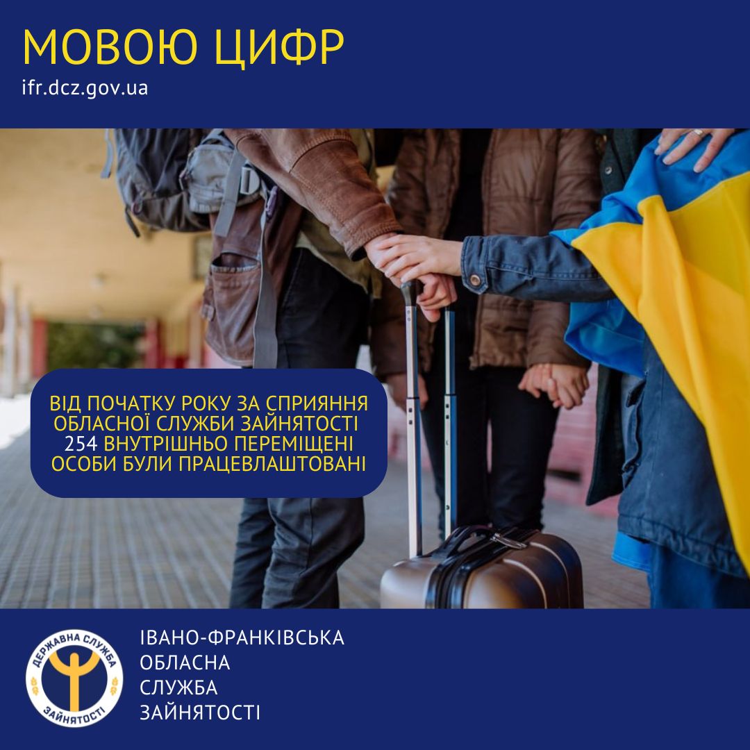 Від початку року статус безробітного мали 873 внутрішньо переміщені особи. За сприяння служби зайнятості 254 внутрішньо переміщені особи були працевлаштовані.