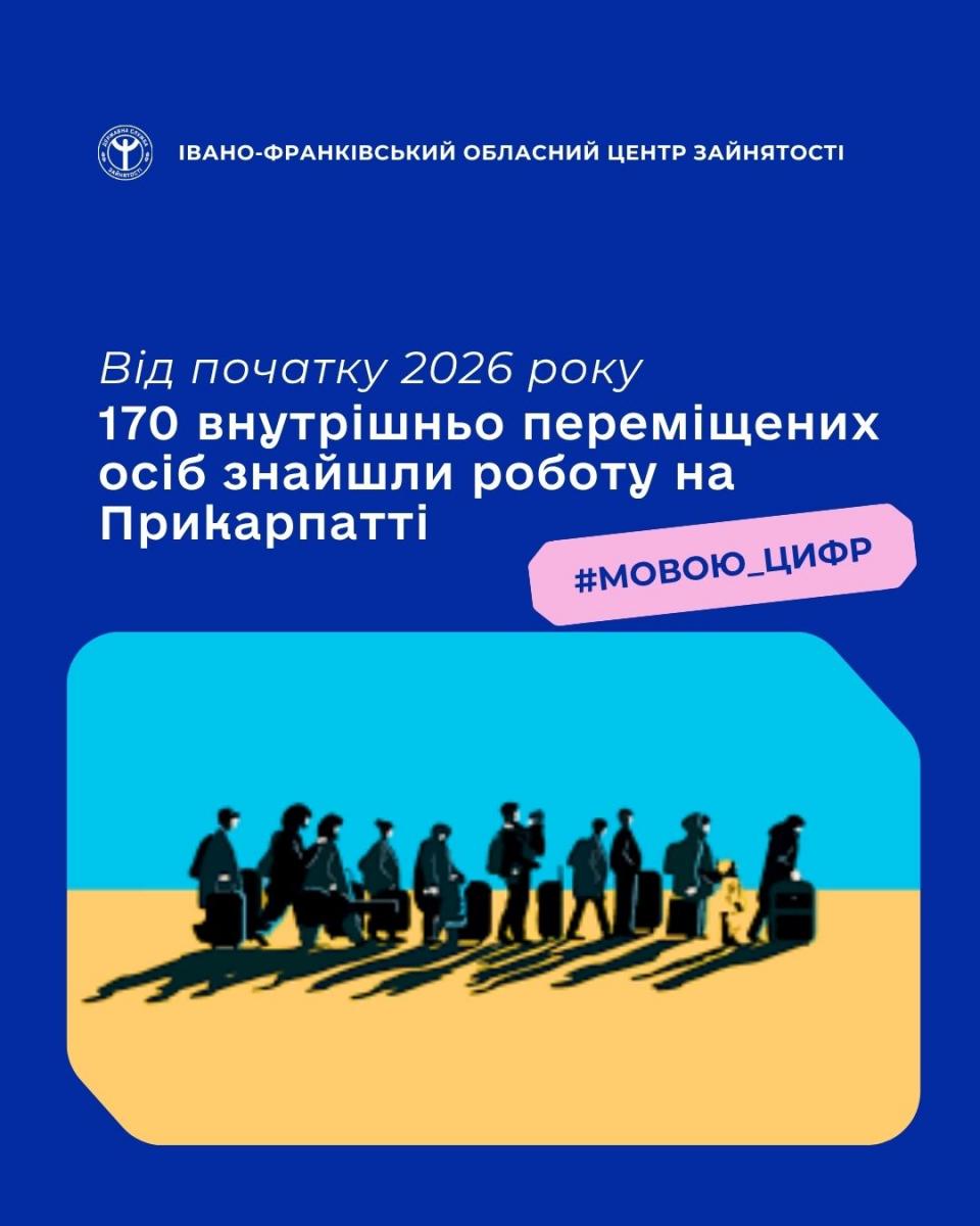 В січні-березні 2026 року статус безробітного мали 725 внутрішньо переміщених осіб. За сприяння служби зайнятості 170 внутрішньо переміщених осіб були працевлаштовані.