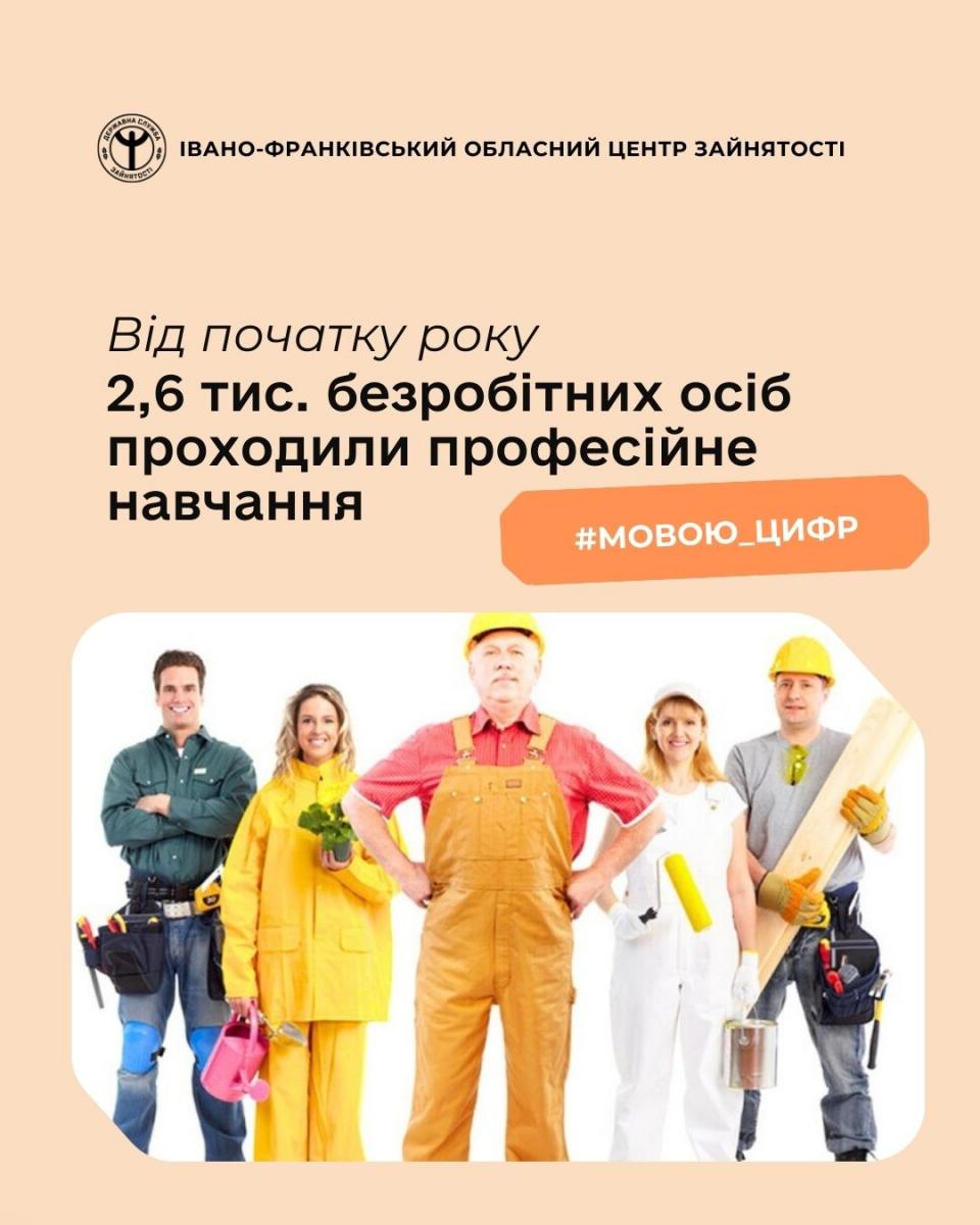 З метою забезпечення професійно-кваліфікаційного рівня шукачів роботи вимогам роботодавців, за сприяння служби зайнятості 2,6 тис. безробітних проходили професійне навчання.