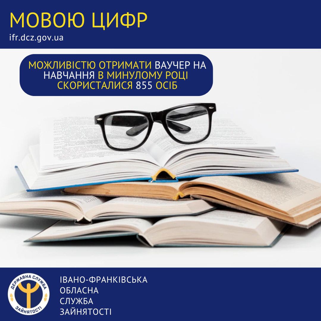 У минулому році службою зайнятості Івано-Франківської області видано 855 ваучерів на перепідготовку за робітничими професіями, підвищення кваліфікації, спеціалізацію за спеціальностями, підготовку на наступному освітньо-кваліфікаційному рівні або за іншою спеціальністю.