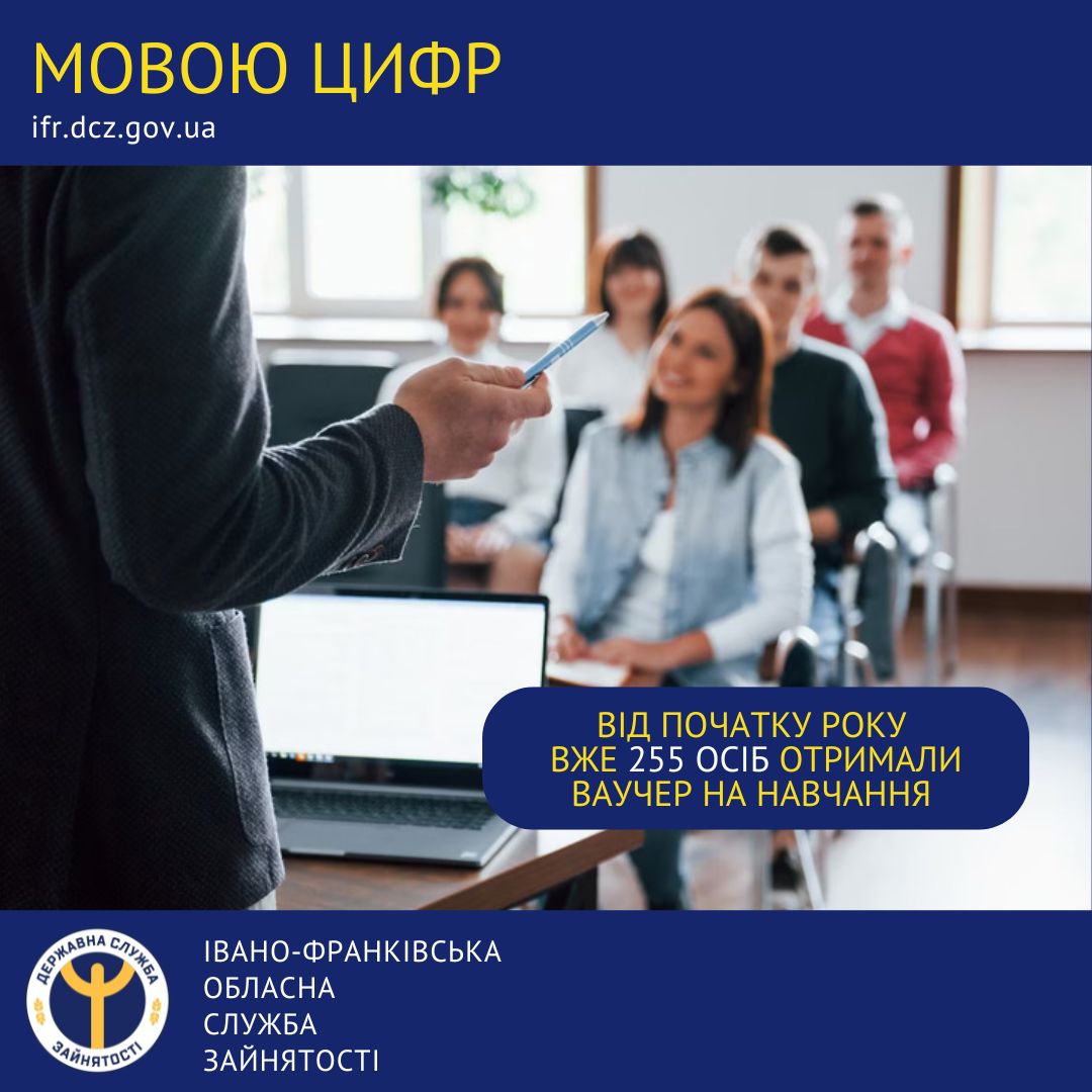 Від початку року службою зайнятості Івано-Франківської області вже видано 255 ваучерів на перепідготовку за робітничими професіями, підвищення кваліфікації, спеціалізацію за спеціальностями, підготовку на наступному освітньо-кваліфікаційному рівні або за іншою спеціальністю.