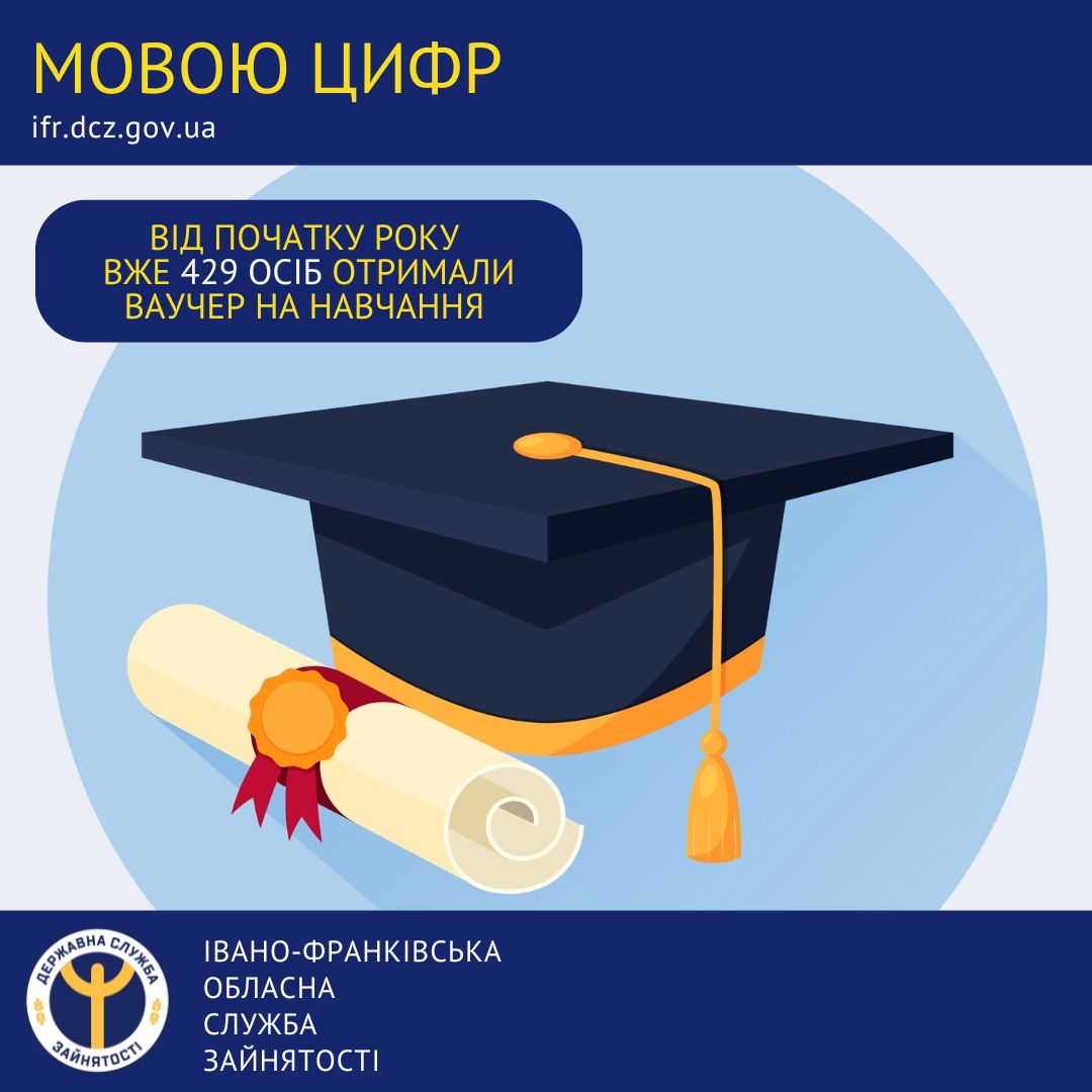 Від початку року службою зайнятості Івано-Франківської області вже видано 429 ваучерів на перепідготовку за робітничими професіями, підвищення кваліфікації, спеціалізацію за спеціальностями, підготовку на наступному освітньо-кваліфікаційному рівні або за іншою спеціальністю.