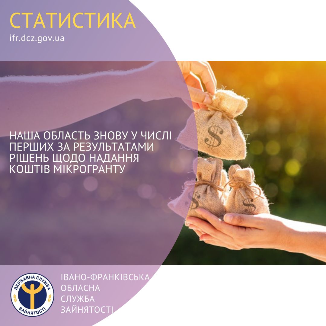 За результатами сьомого періоду подачі заяв на отримання мікрогрантів згідно програми «Власна справа» (https://is.gd/xBaklo) Івано-Франківська область знову у п’ятірці лідерів серед регіонів з найбільшою кількістю прийнятих Державним центром зайнятості позитивних рішень.