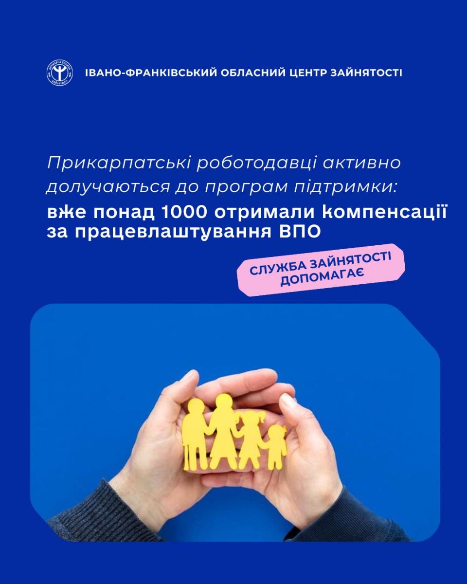 Від початку дії програми з надання роботодавцям компенсації витрат на оплату праці за працевлаштування внутрішньо переміщених осіб внаслідок проведення бойових дій під час воєнного стану в Україні вже 1086 роботодавців нашої області отримали компенсацію за працевлаштування 1732 внутрішньо переміщених осіб.