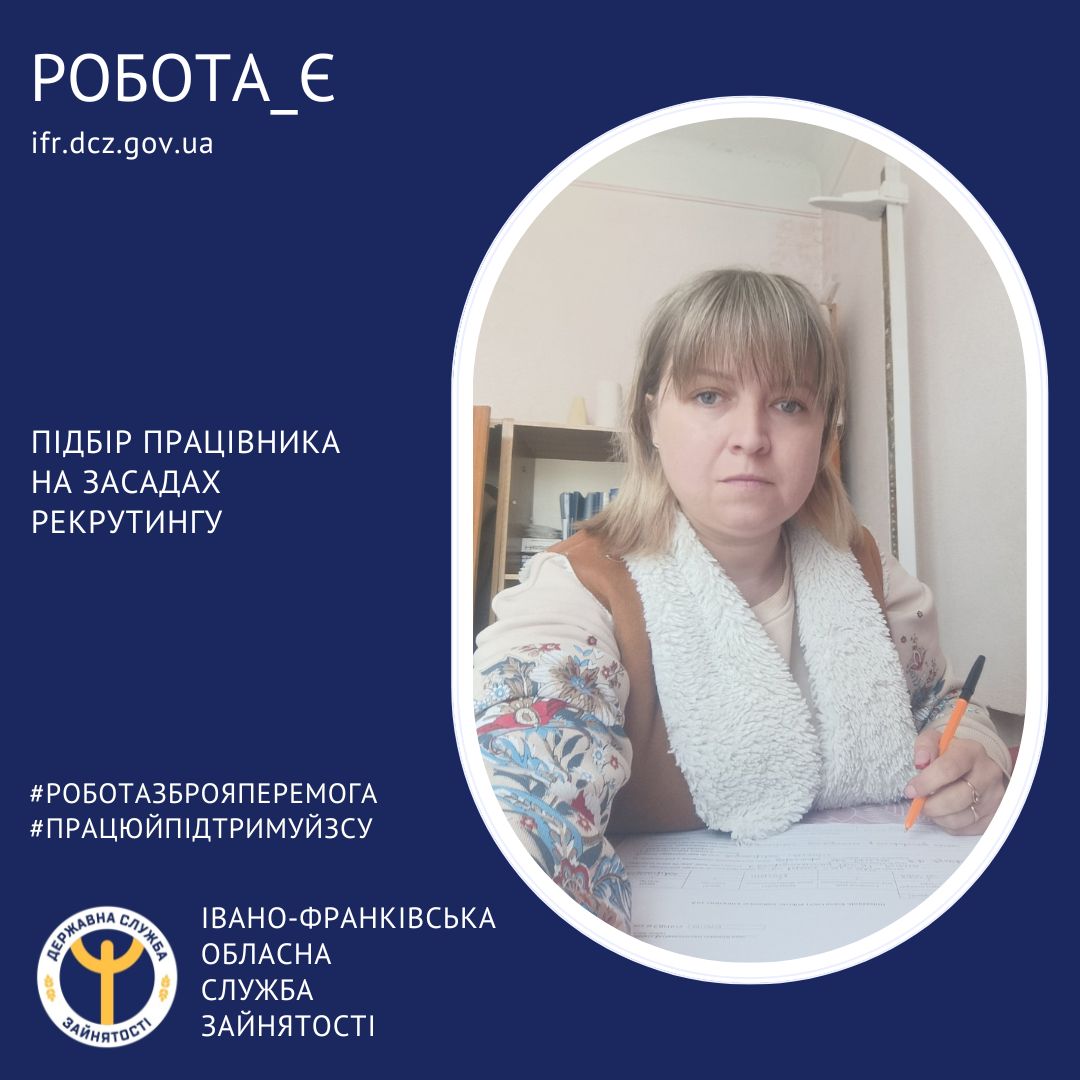 Проаналізувавши професійно-кваліфікаційний склад безробітних осіб, які перебували на обліку у службі зайнятості та резюме шукачів роботи, рекрутер управління підібрала на дану вакансію Ірину Холівчук, яка повністю відповідала основним вимогам роботодавця. Дівчина зацікавилась даною вакансією і після успішної співбесіди з роботодавцем була працевлаштована.