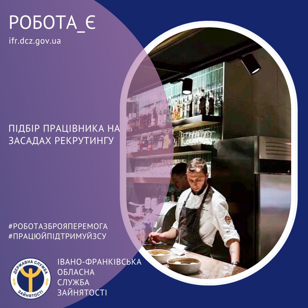 Одним з успішних прикладів працевлаштування методом рекрутингу є підбір працівника на посаду шеф-кухаря для підприємниці Юлії Стефанюк, яка звернулася за допомогою в укомплектуванні вакансії до фахівців Івано-Франківської філії Івано-Франківського обласного центру зайнятості.