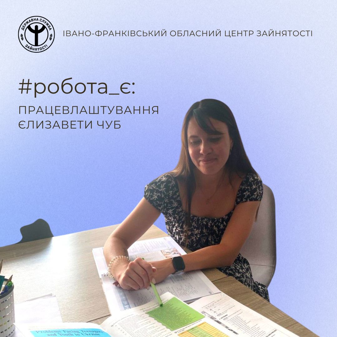 З метою пошуку роботи до Калуської філії Івано-Франківського обласного центру зайнятості звернулася внутрішньо переміщена особа Єлизавета Чуб, яка через активні бойові дії змушена була залишити свою домівку на Харківщині та переїхала на Прикарпаття.