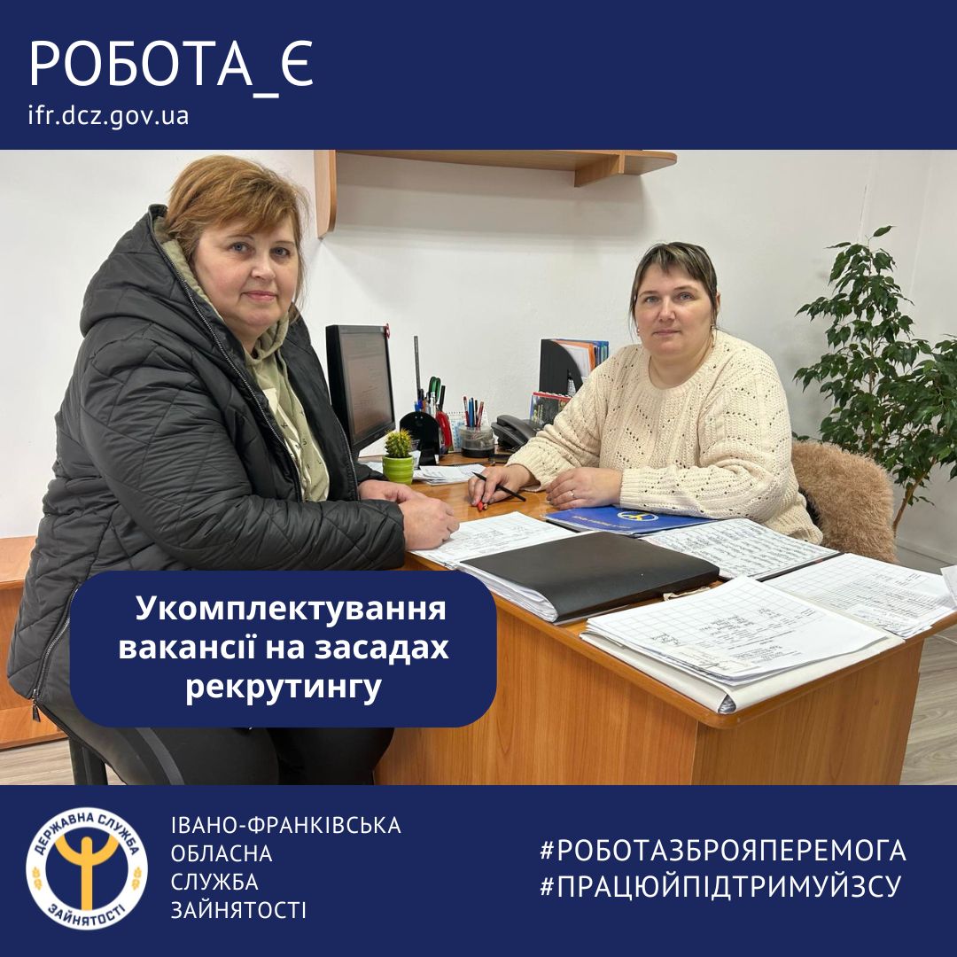 Яскравим прикладом співпраці на засадах рекрутингу є укомплектування вакансії на посаду кухаря для підприємця Дмитра Григорчука, який звернувся за допомогою до Косівської філії Івано-Франківського обласного центру зайнятості.