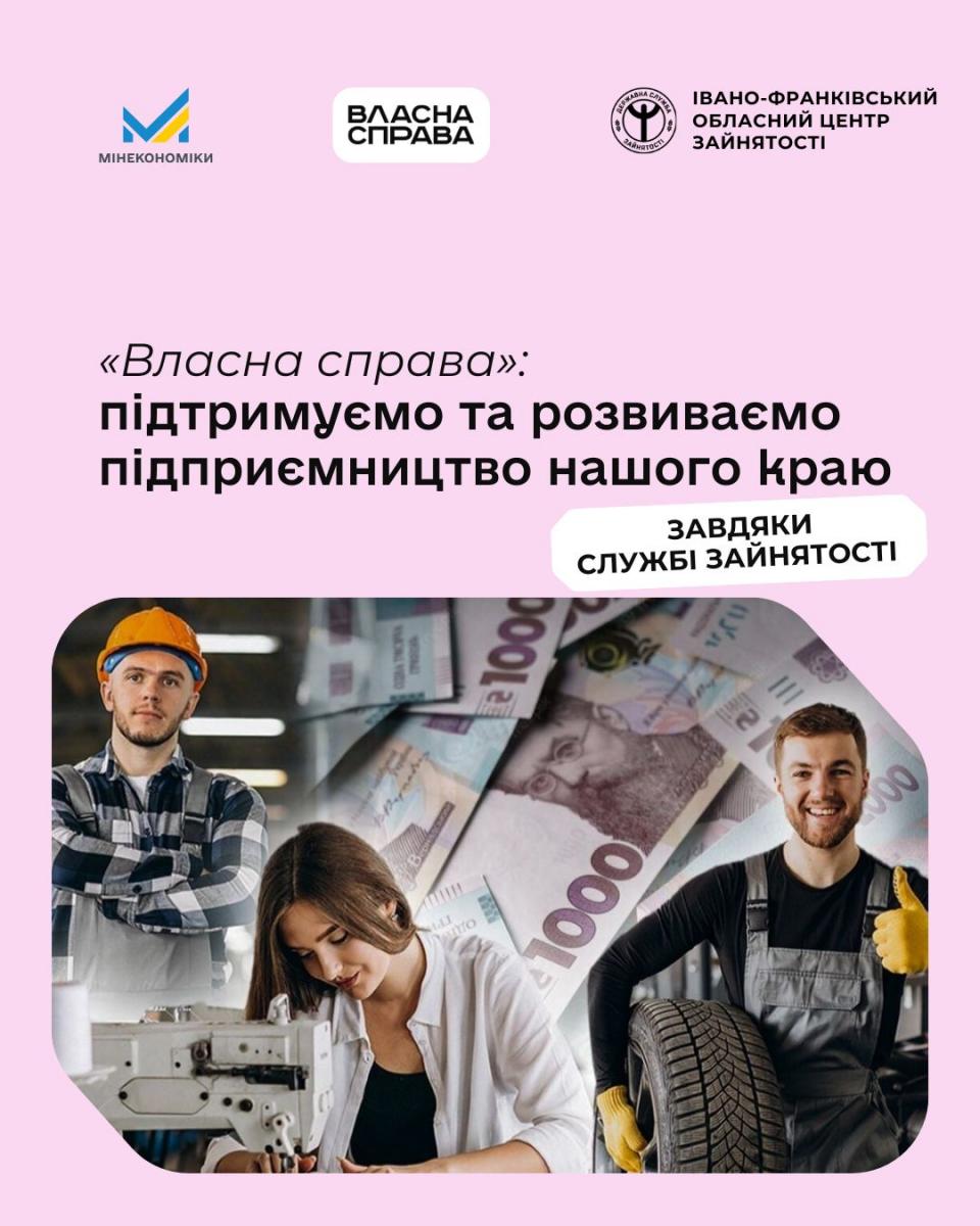 Більше про можливості програми «Власна справа» читайте на сайті Державної служби зайнятості за посиланням https://www.dcz.gov.ua/people/micro.
