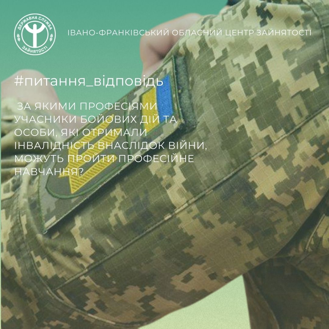 З інформацією щодо навчання учасників бойових дій та осіб з інвалідністю внаслідок війни можна ознайомитися на вебсторінці Державного центру зайнятості  https://is.gd/nAezlC.