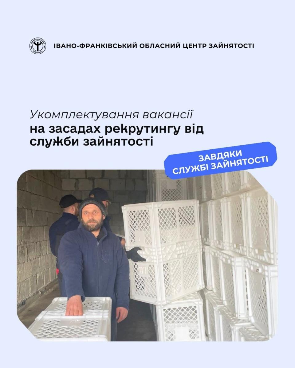Рекрутер запропонувала чоловікові декілька вакансій, серед яких найбільше його зацікавила вакансія на посаду вантажника до ТОВ "М'ЯСНИК ПРИКАРПАТТЯ", керівник якого звернувся до служби зайнятості за допомогою у підборі працівника.