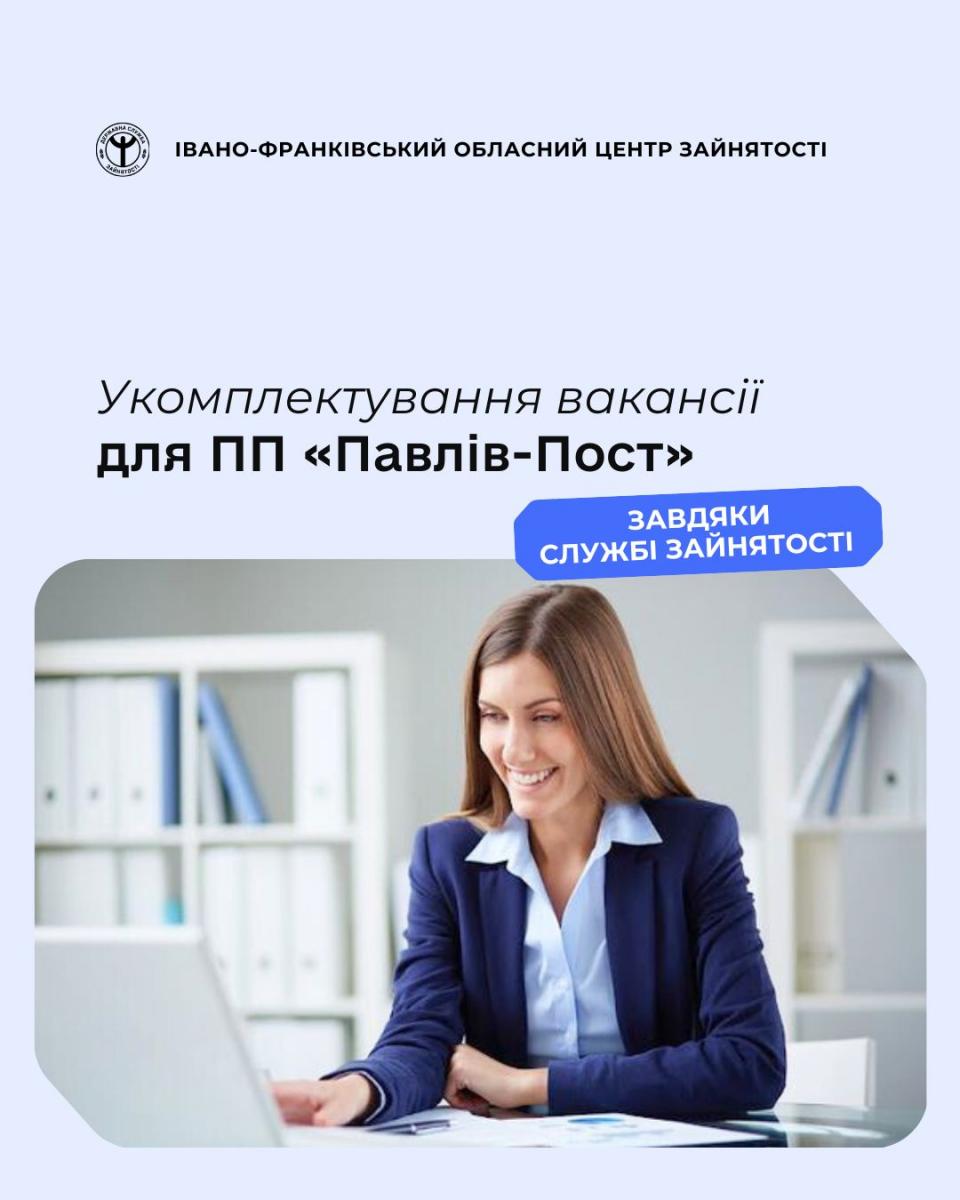 До Рожнятівського управління Калуської філії Івано-Франківського обласного центру зайнятості за допомогою у підборі працівника на посаду діловода звернувся представник ПП «Павлів-Пост».