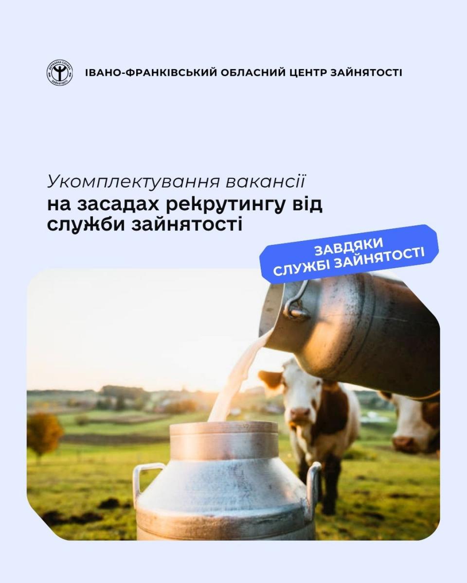 Нещодавно до Снятинського управління Коломийської філії Івано-Франківського обласного центру зайнятості за допомогою в укомплектуванні вакансії на посаду оператора машинного доїння звернувся керівник ТОВ «АПФ «Родник Плюс» Віталій Марунчак.